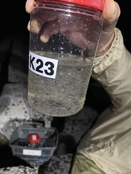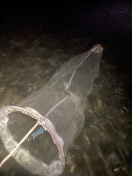 今回のトリム堰下流では、親鮎は少ししか見えませんでしたが、仔魚は沢山流下しています。