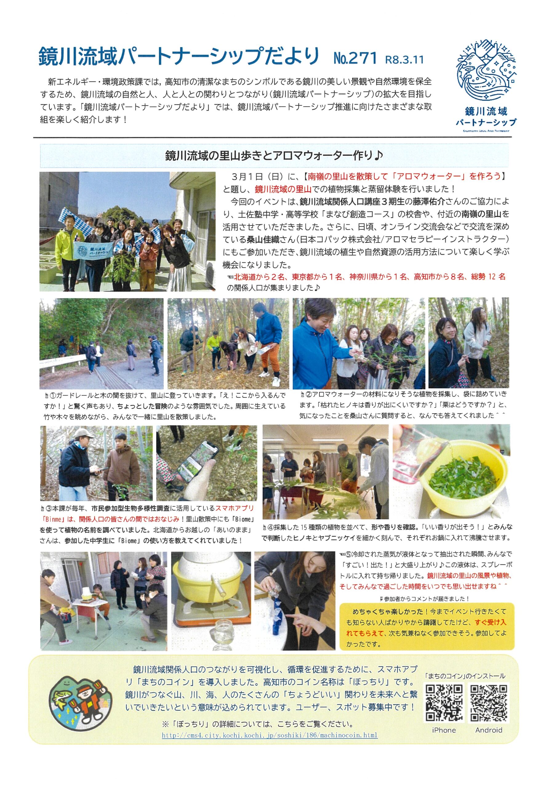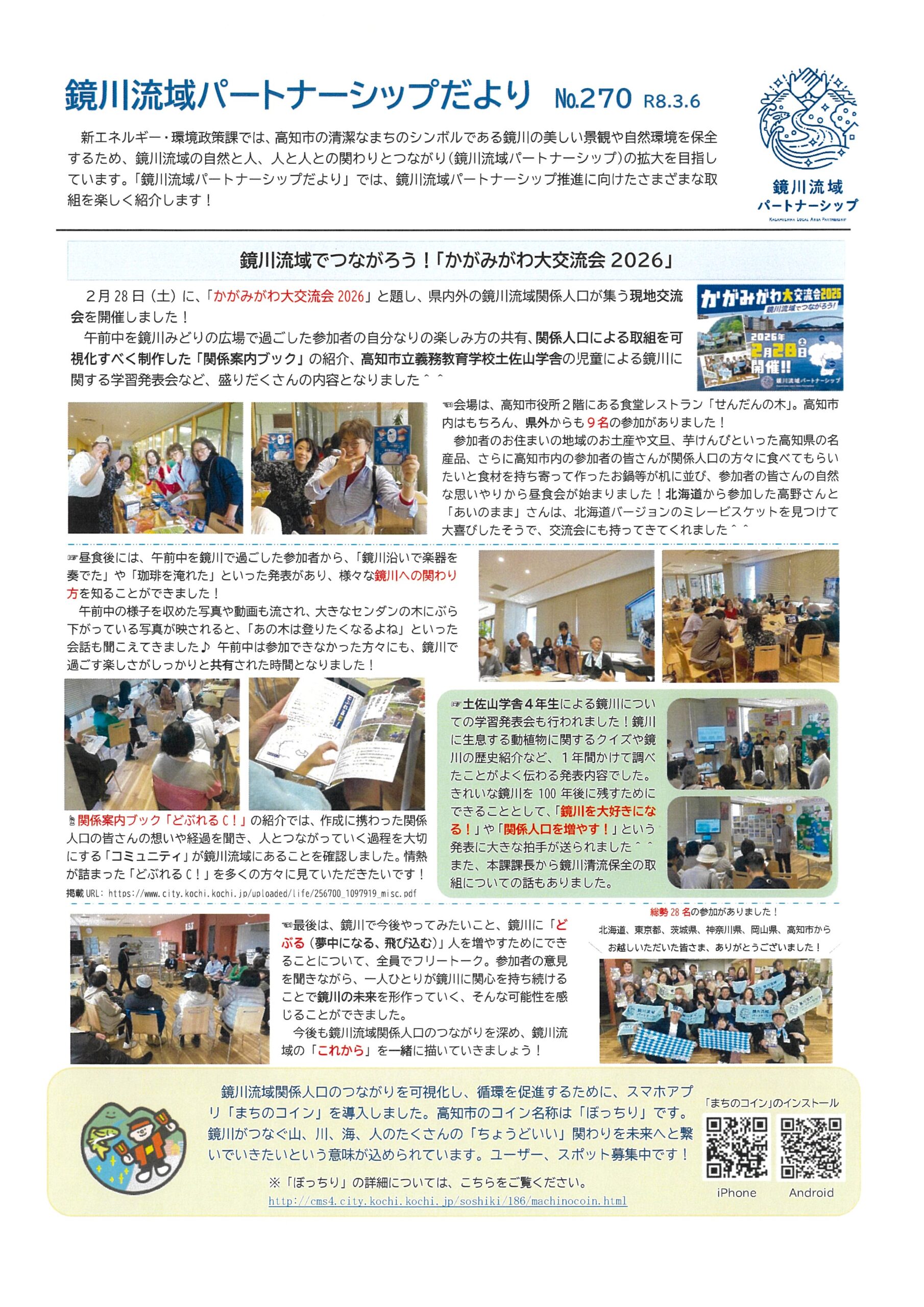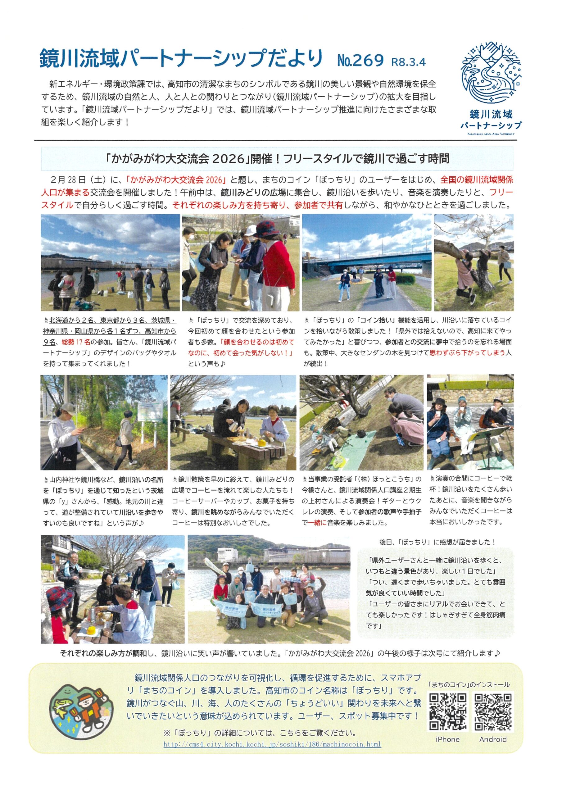 高知市新エネルギー・環境政策課の鏡川流域パートナーシップ推進に向けたさまざまな取り組みを紹介するお便り№269~№271をご紹介いたします。