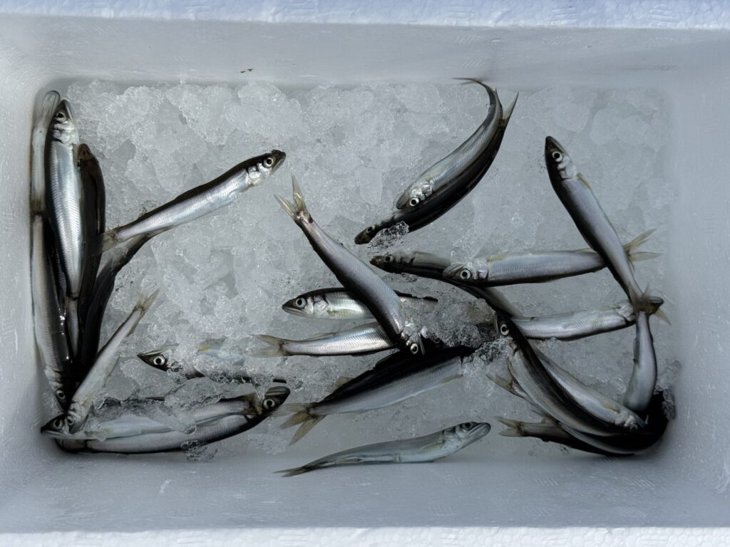 本日また、今城雅之准教授のラボの学生さんが、鏡川下流域トリム堰下にてアユのサンプリングを行いましたので、アユの天然遡上の状況をお知らせいたします