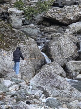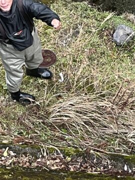 渇水の2月23日(月)、成魚のアメゴを放流しましたが、なんとも水がなく、